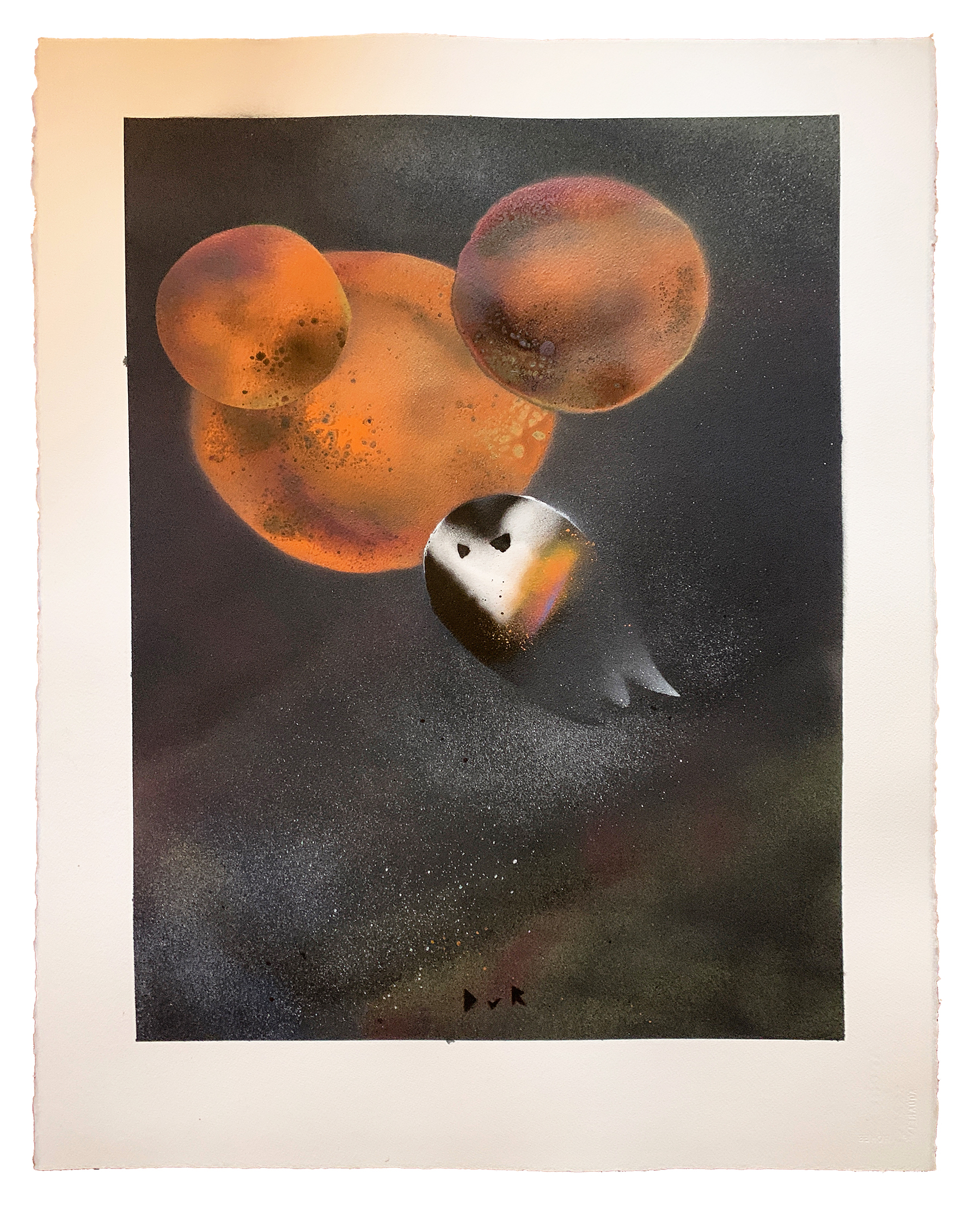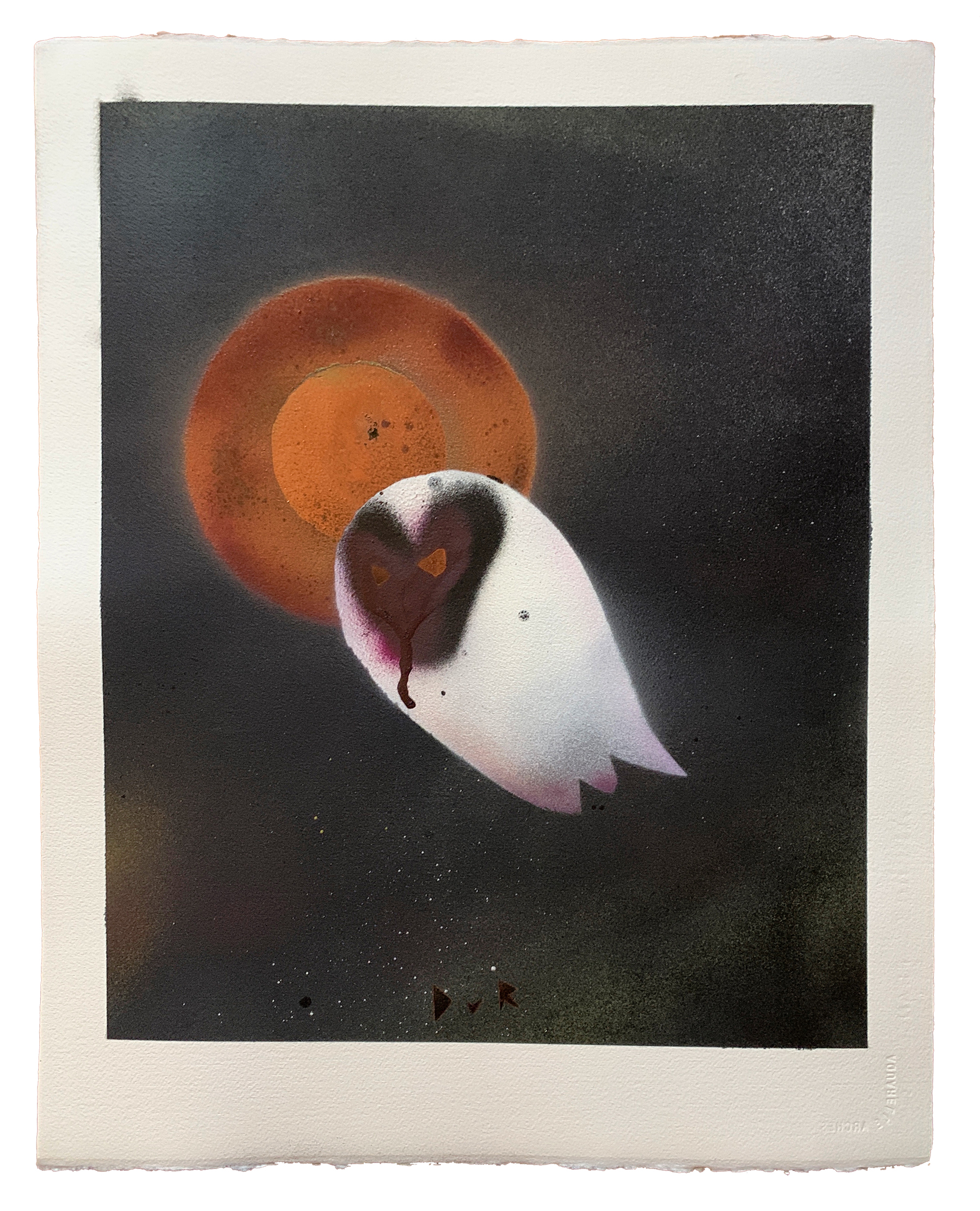 Synthetic polymer, pigment, acrylic & enamel spray paint on 300 gsm paper