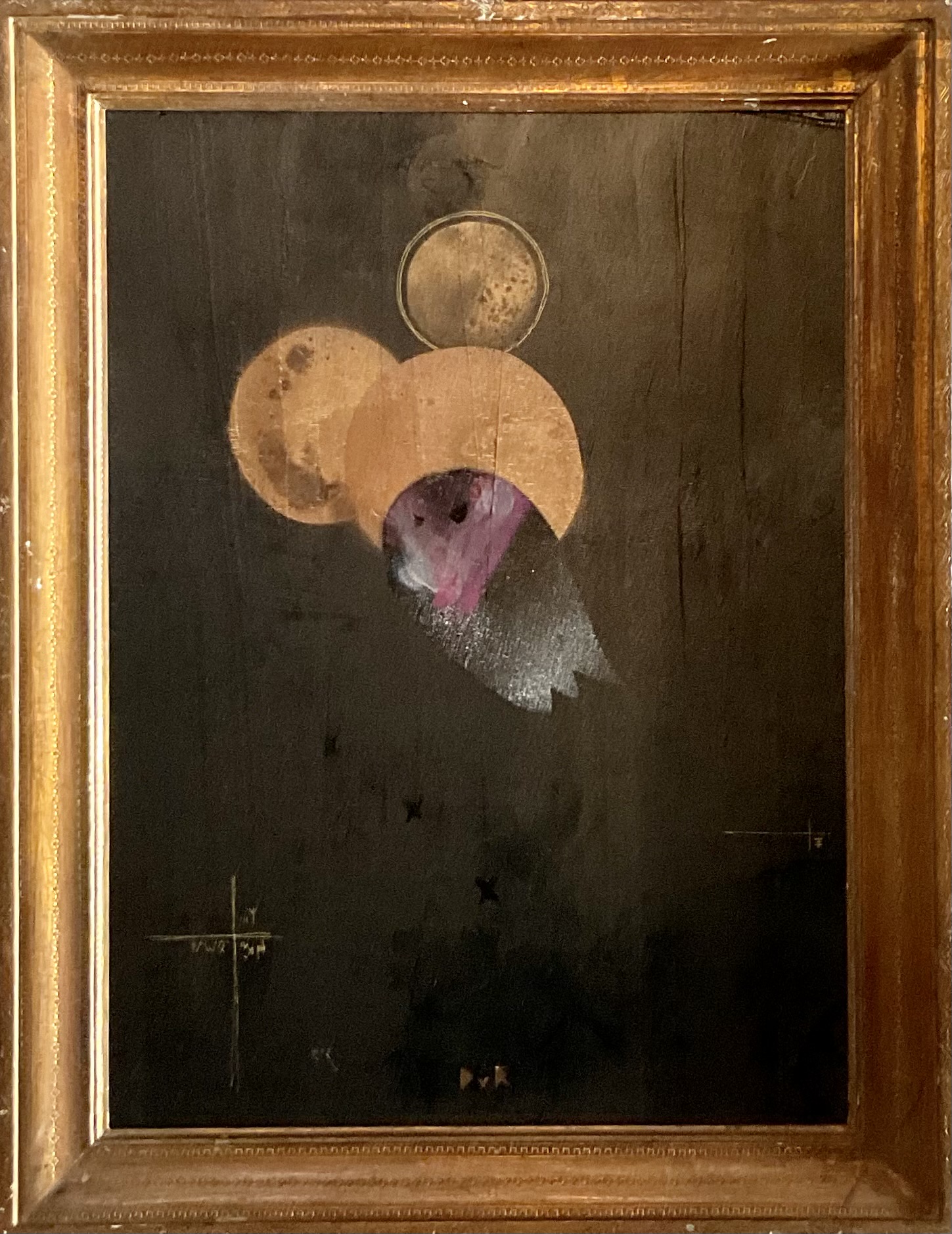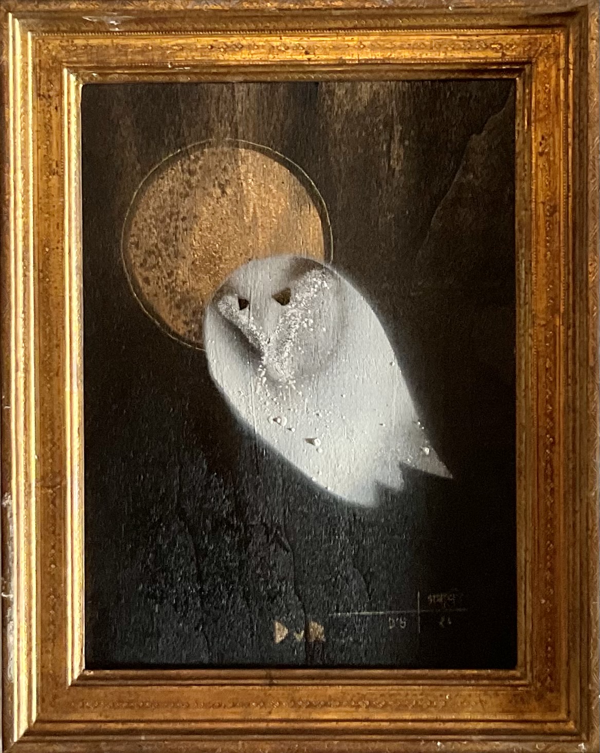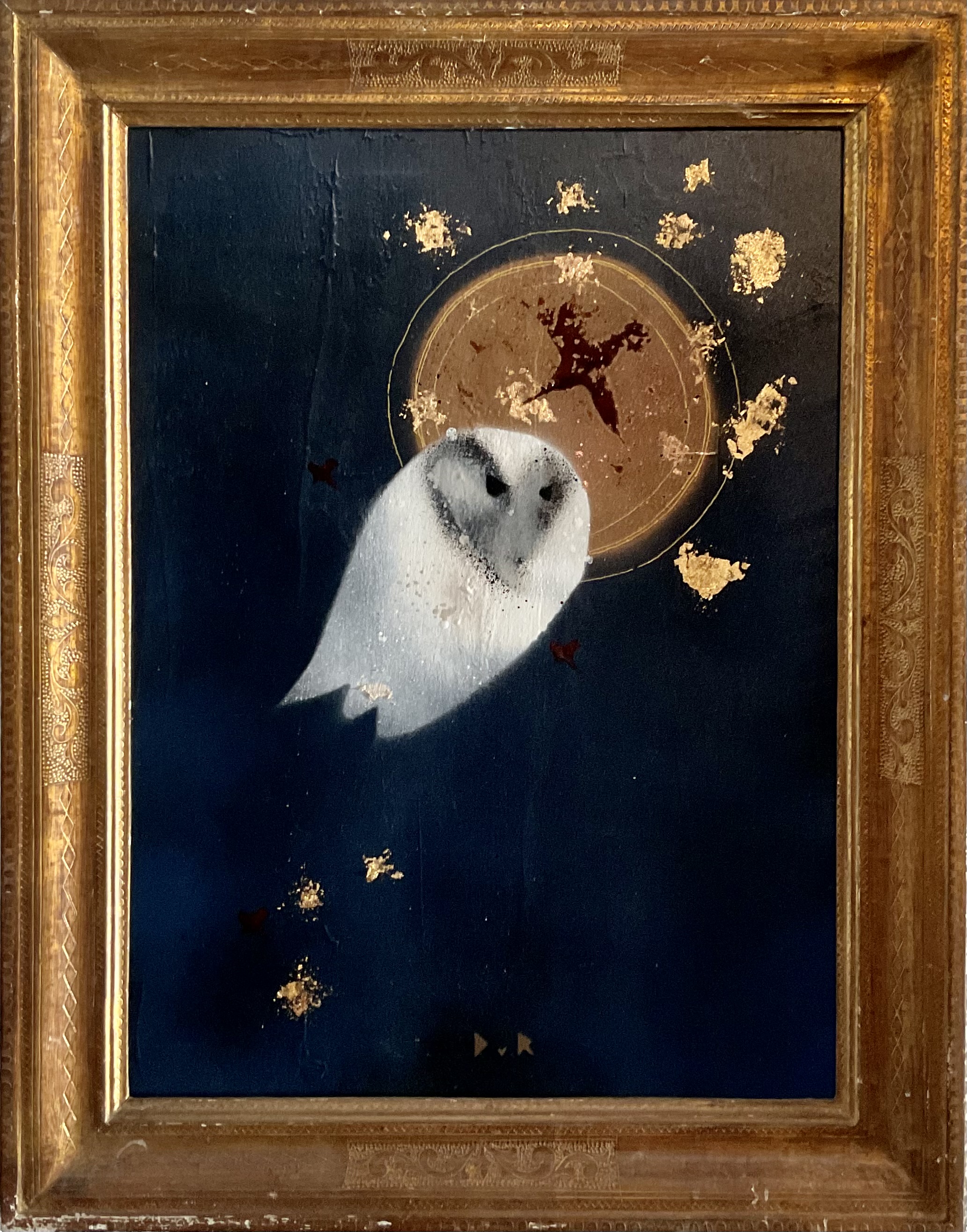 on reclaimed ply panel in antique gold frame (printed icon on reverse)