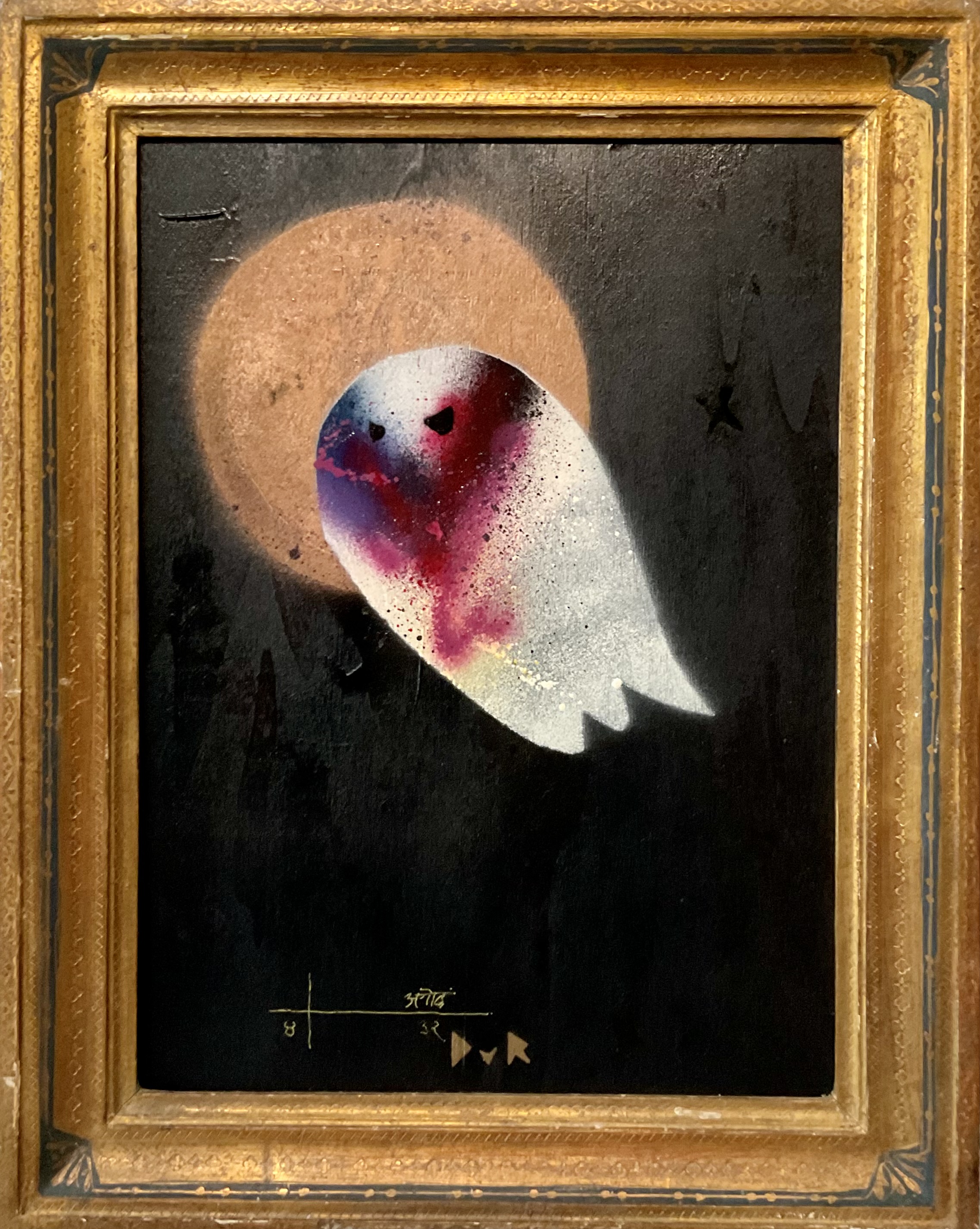 Synthetic polymer, pigment, rabbit skin glue, ink, acrylic & enamel spray paint, gold leaf, lacquer