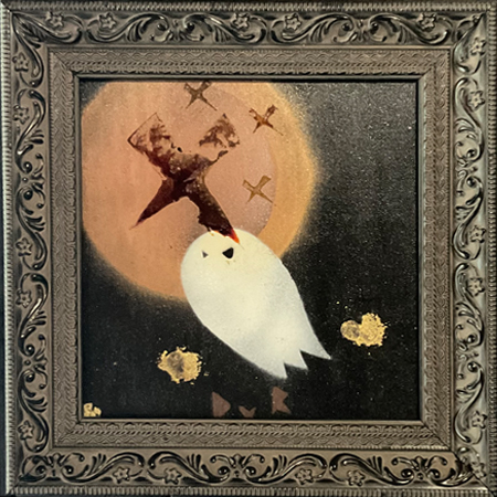 Synthetic polymer, pigment, acrylic & enamel spray paint on stabilized cardboard