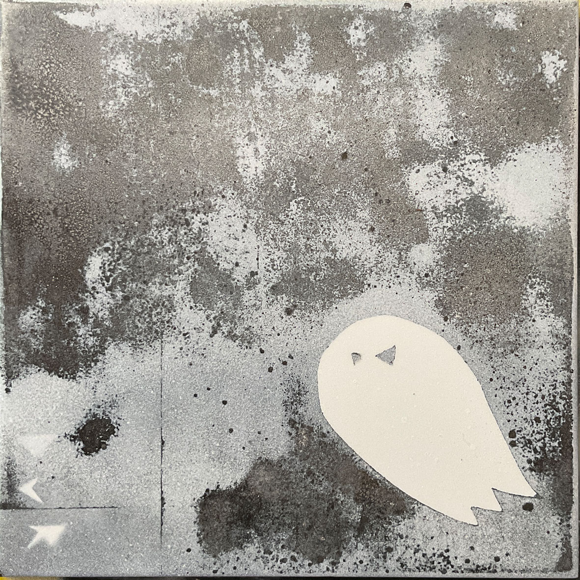Synthetic polymer, acrylic & enamel spray paint on ceramic tile