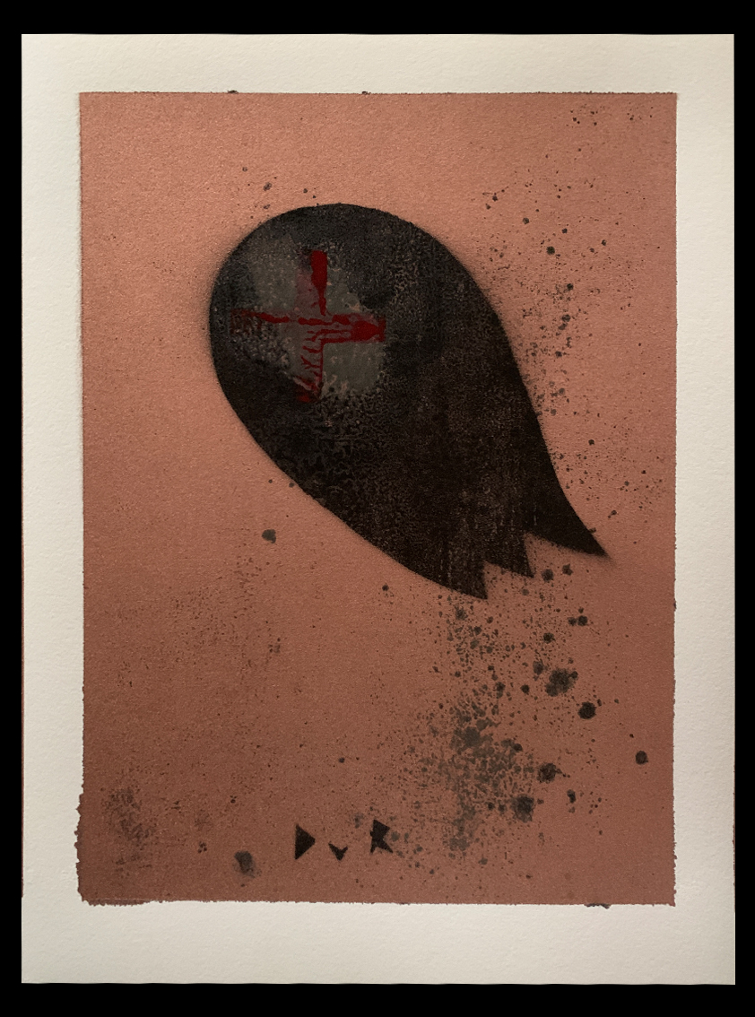 Synthetic polymer, pigment, ink, acrylic & enamel spray paint on 300 gsm paper